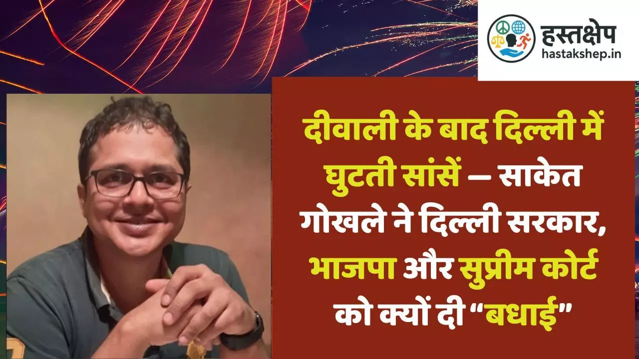 दीवाली के बाद दिल्ली में घुटती सांसें — साकेत गोखले ने दिल्ली सरकार, भाजपा और सुप्रीम कोर्ट को क्यों दी “बधाई”